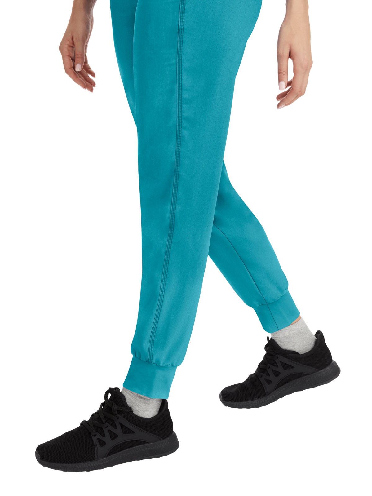 Medyczne joggery łączące wygodę z komfortem użytkowania. Pionowe przeszycia na nogawkach optycznie wysmuklają nogi, a szeroka guma w pasie pewnie utrzymuje spodnie na właściwym miejscu. Ciekawym i praktycznym rozwiązaniem jest zamek przy kieszeniach.