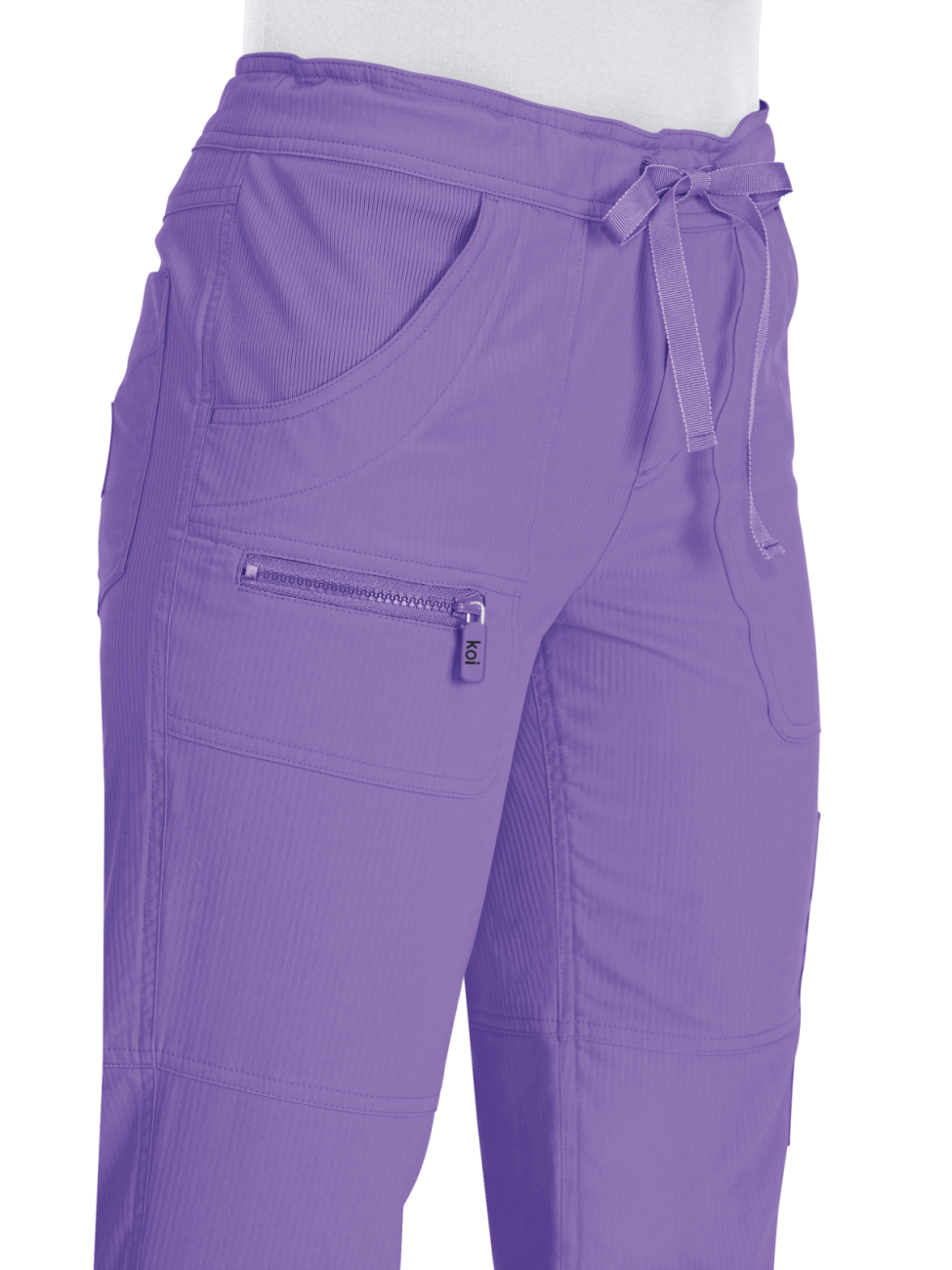 Spodnie medyczne damskie z niskim stanem wrzosowe Koi Peace* Wisteria