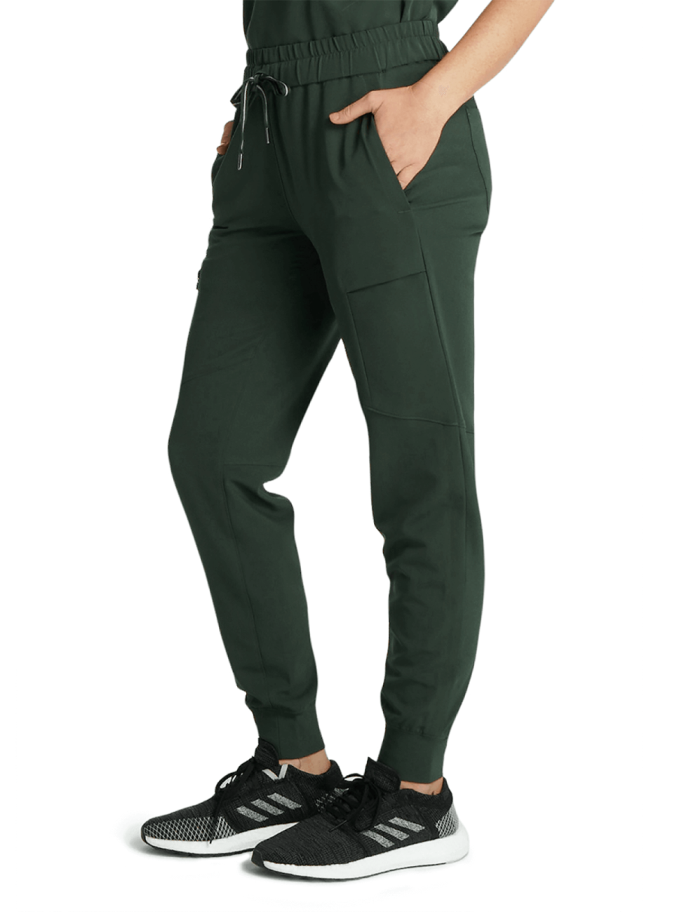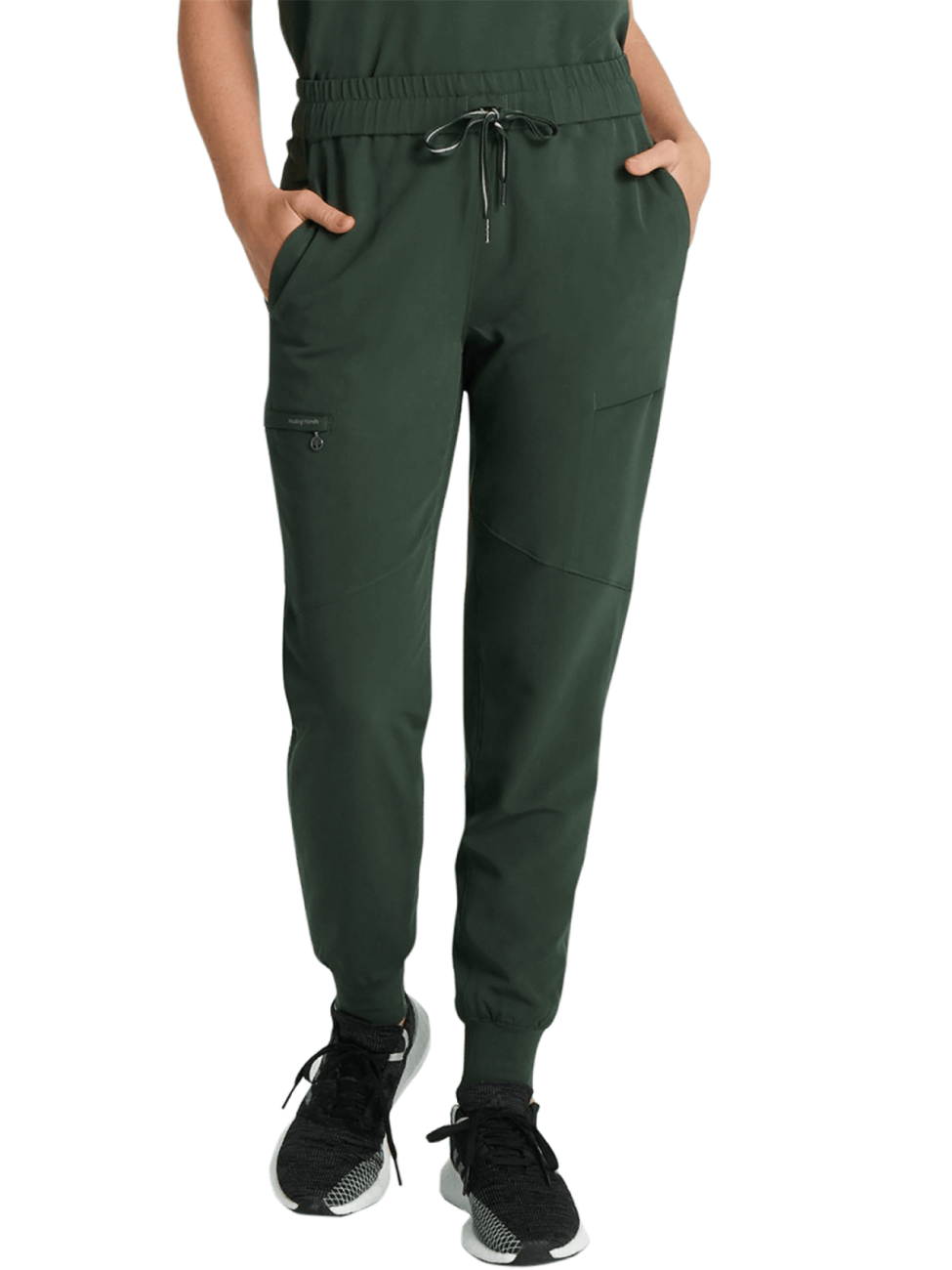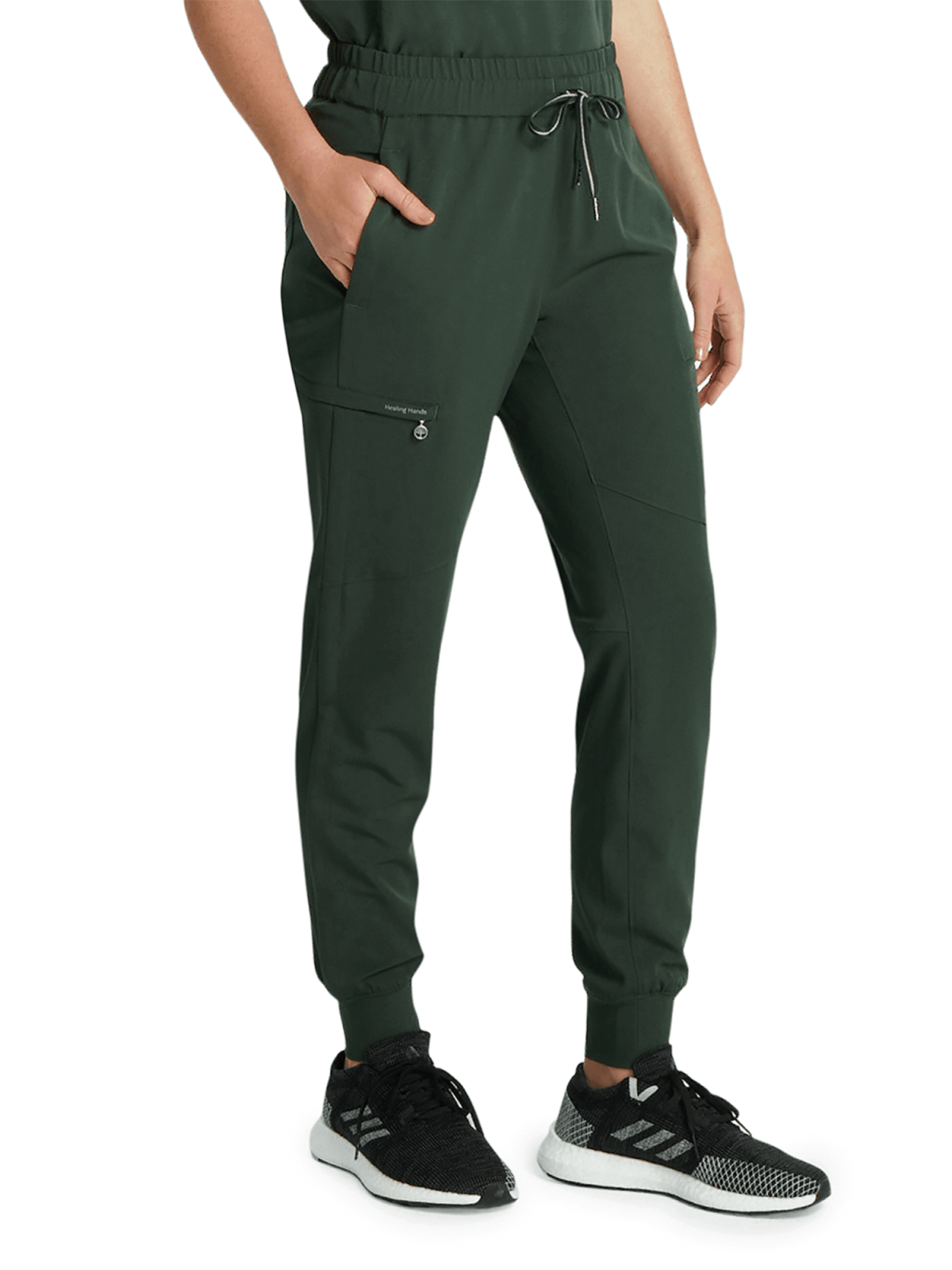 Spodnie medyczne damskie z przeszyciami na nogawkach ciemno zielone HH Naya Dark Pine