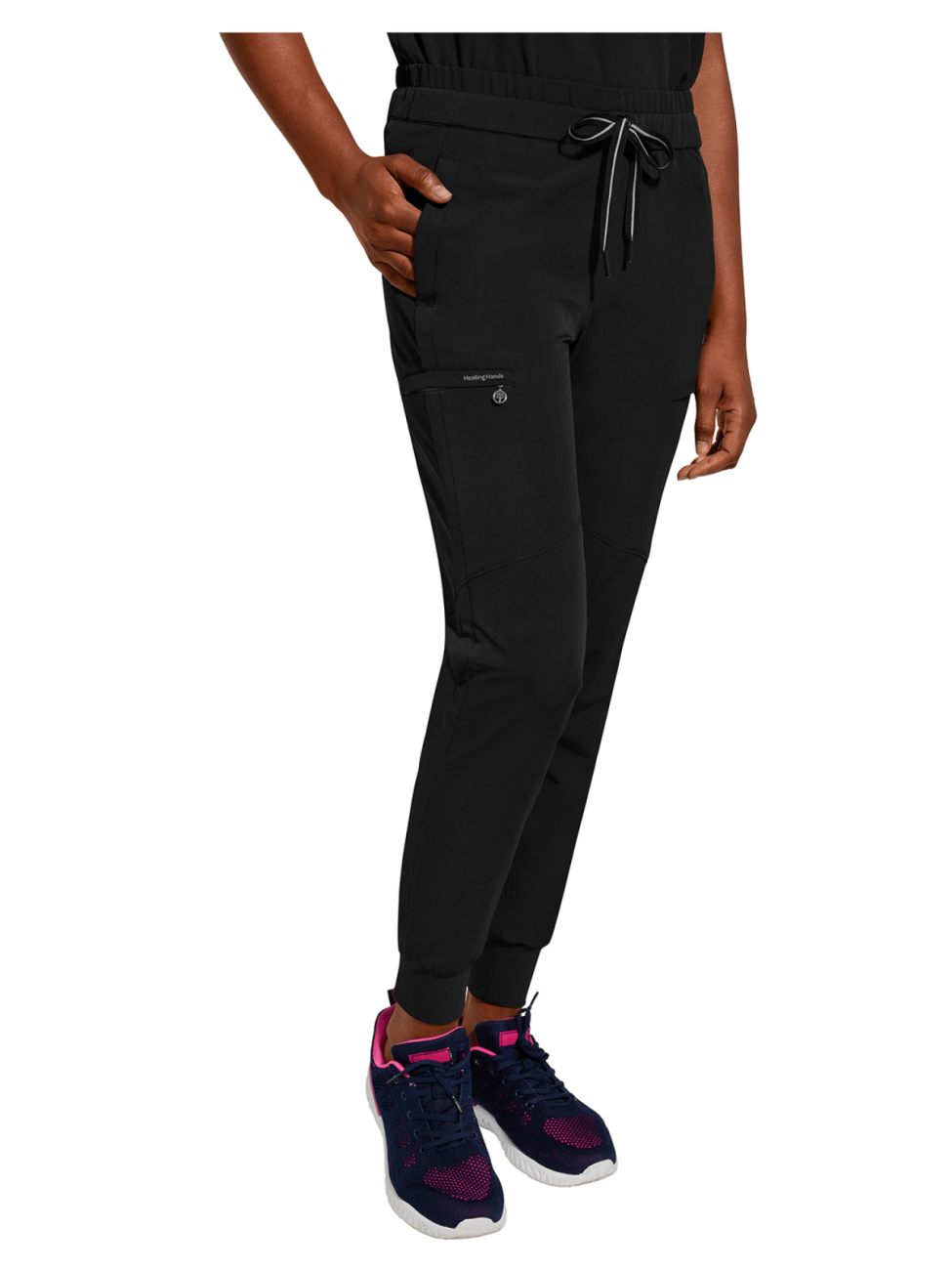Spodnie medyczne damskie z przeszyciami na nogawkach czarne HH Naya Black