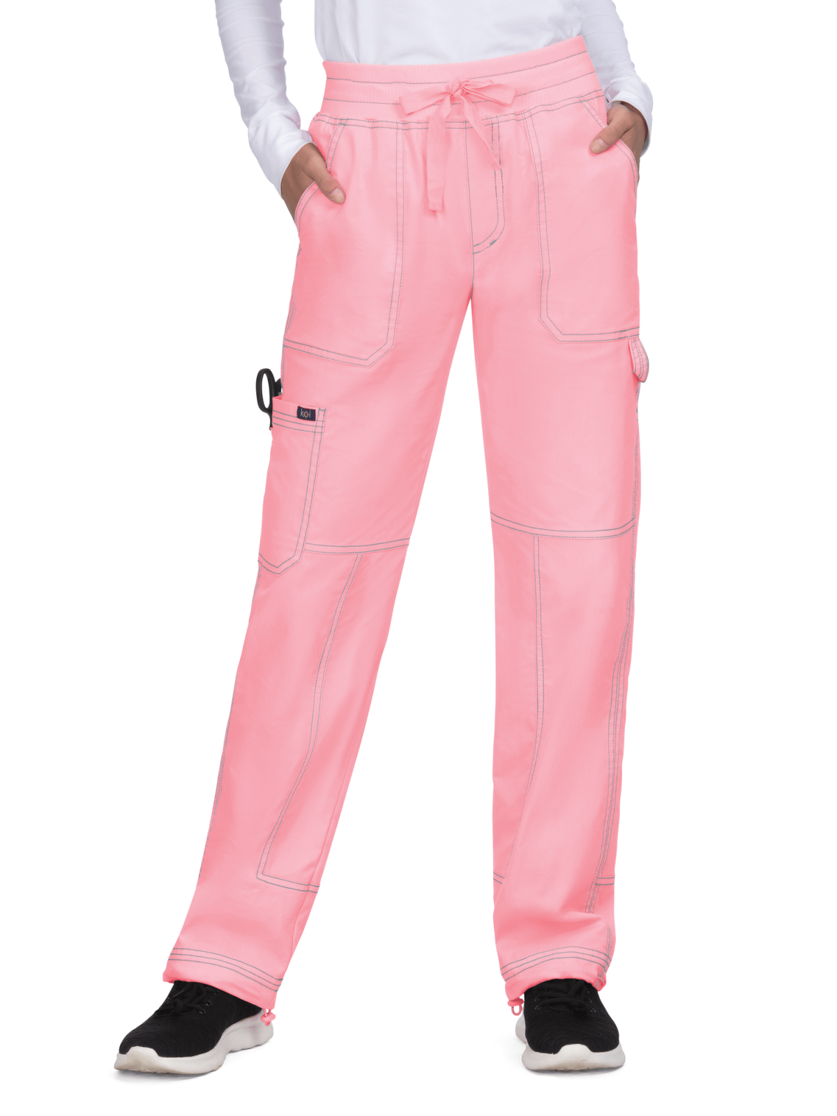 Spodnie medyczne damskie z troczkiem przy kostce sweet pink Koi Alma Sweet Pink