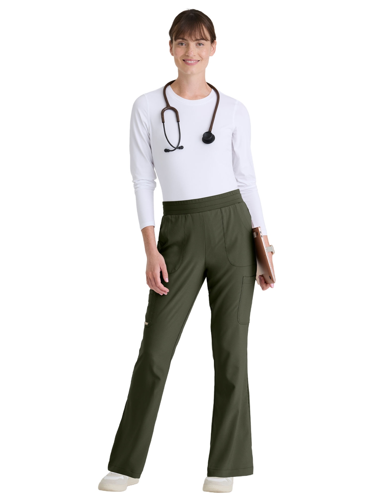Spodnie Sky od Grey's Anatomy™ Evolve powstały z myślą o kobietach, które potrzebują pełnej swobody, eleganckiej linii i trwałości w codziennej pracy. Wysoki stan i kobieca sylwetka Fit & Flare świetnie podkreślają proporcje, jednocześnie pozostając komfortowe nawet podczas najbardziej wymagających zmian.