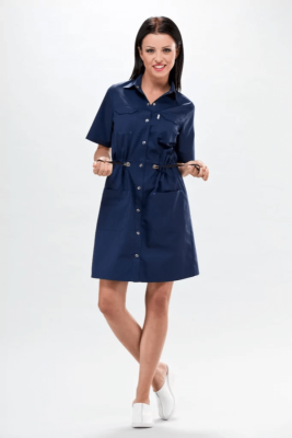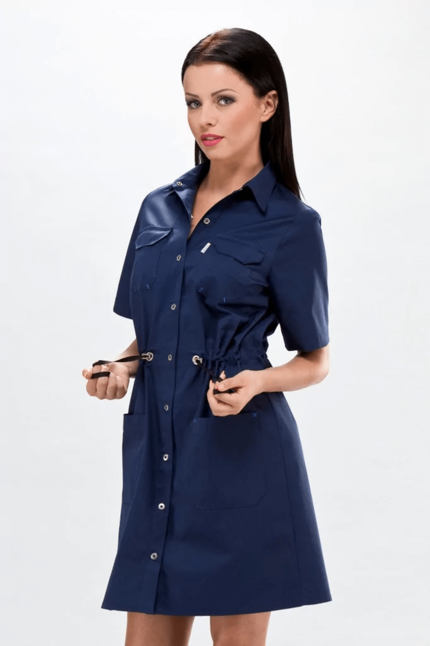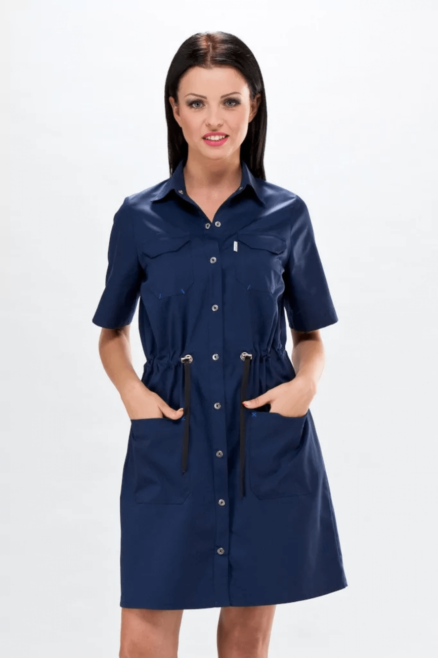 Dodatkowo sukienka jest wykonana z tkaniny, która zapewnia komfort i wygodę w pracy - nie ogranicza ruchów i idealnie dopasowuje się do sylwetki.