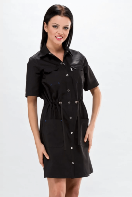 Dodatkowo sukienka jest wykonana z tkaniny, która zapewnia komfort i wygodę w pracy - nie ogranicza ruchów i idealnie dopasowuje się do sylwetki.