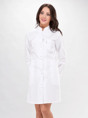 Sukienka medyczna ELDAN LENA biała długi rękaw