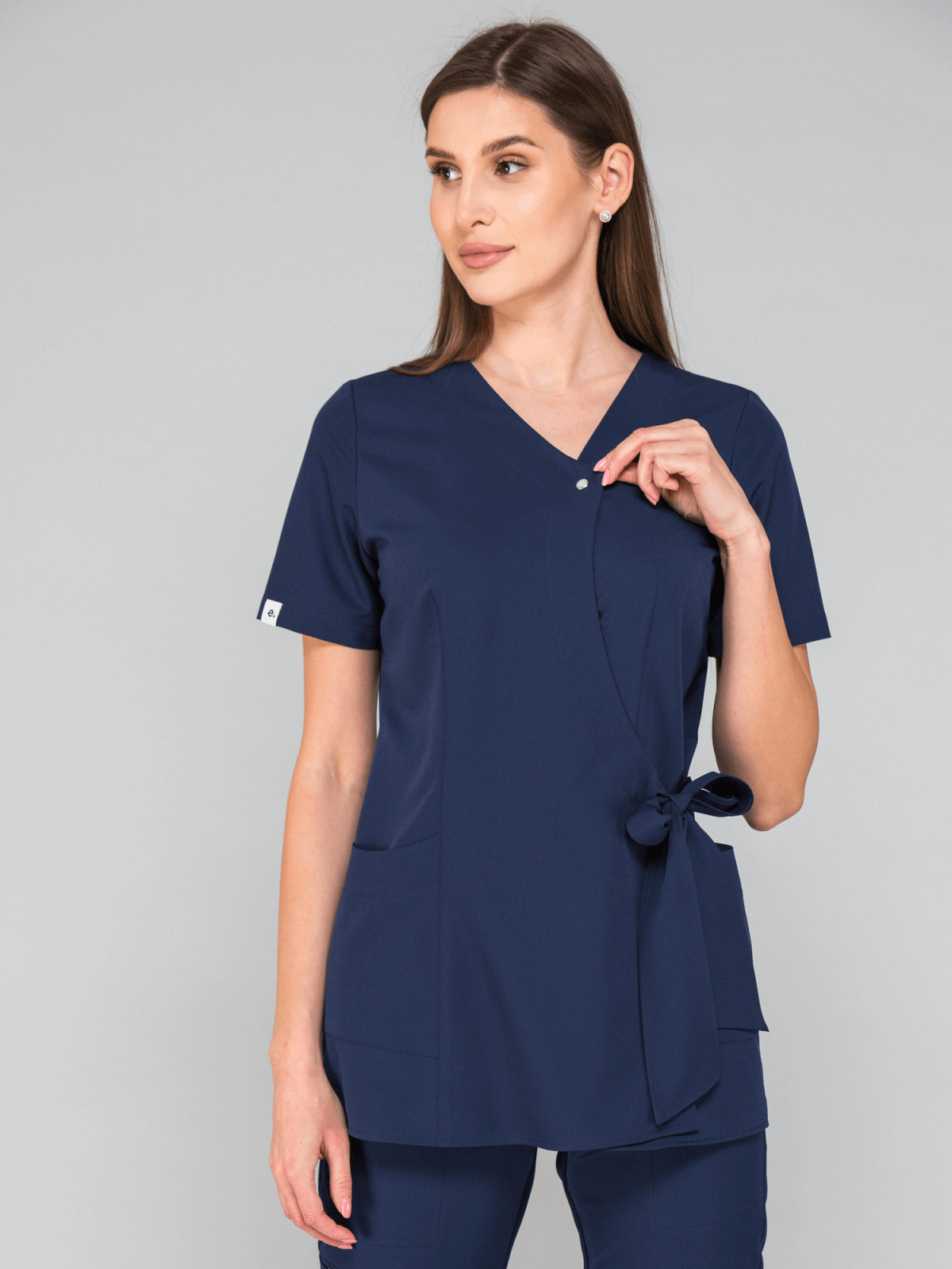 Wyjątkowa bluza medyczna z wiązaniem w pasie podkreśli Twoją talię , a dwie kieszenie pozwolą na pomieszczenie wszystkich najpotrzebniejszych drobiazgów.