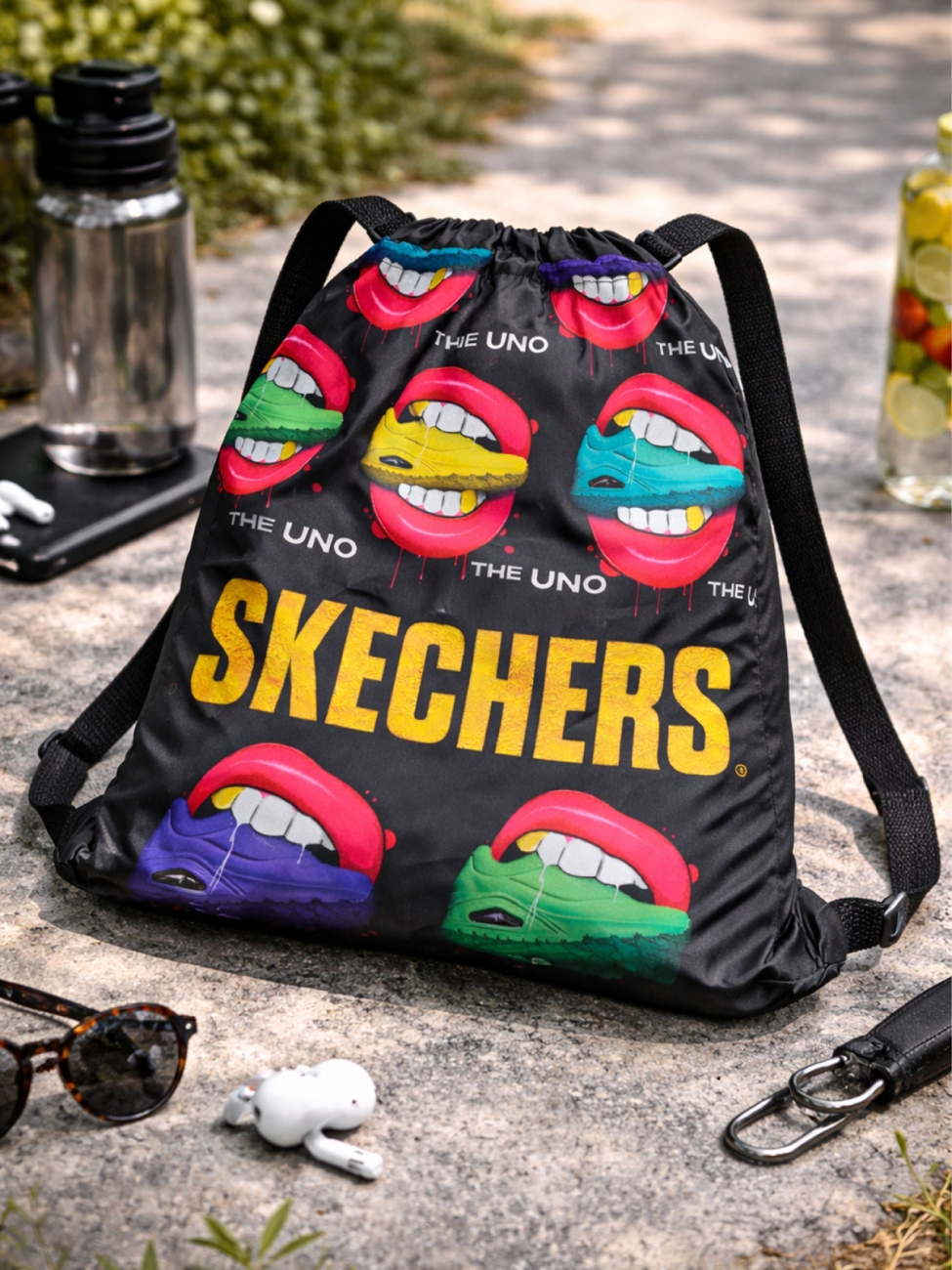 Szukasz dodatku, który nie zginie w tłumie? Worek Skechers THE UNO to propozycja dla osób, które cenią odważny design i energię koloru. Czarna baza podkreśla intensywne, graficzne motywy z charakterystycznymi ustami i kultowymi modelami butów, a duże, złote logo Skechers nadaje całości wyrazistego, streetwearowego charakteru.